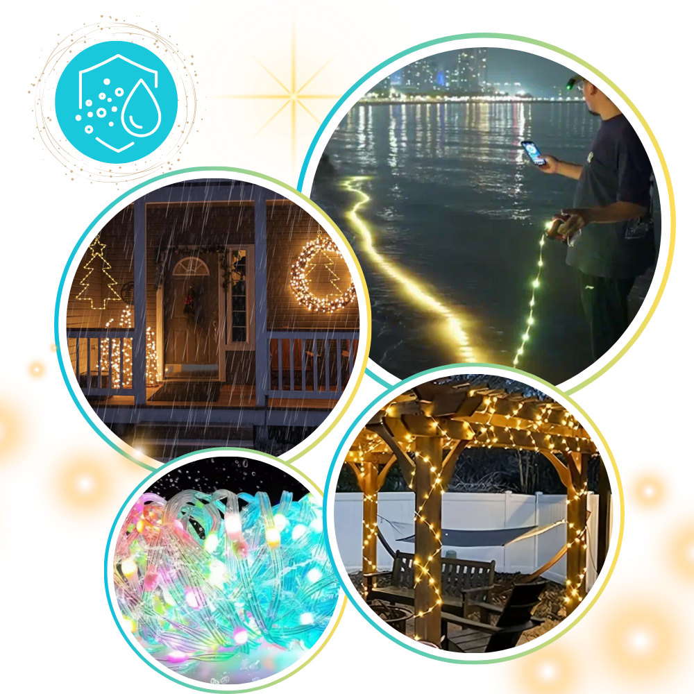 Progettate per durare nel tempo, queste Luci LED con Sincronizzazione Musicale sono dotate di un robusto grado di impermeabilità IP65, che garantisce prestazioni affidabili sia in ambienti interni che esterni. I fili di rame completamente sigillati resistono all'umidità, rendendole perfette per feste in giardino, decorazioni sul balcone o illuminazioni festive in qualsiasi condizione atmosferica. Sebbene i fili LED siano impermeabili, è necessario proteggere il controller, l'adattatore e la porta USB dall'esposizione all'acqua per mantenere un funzionamento ottimale.
